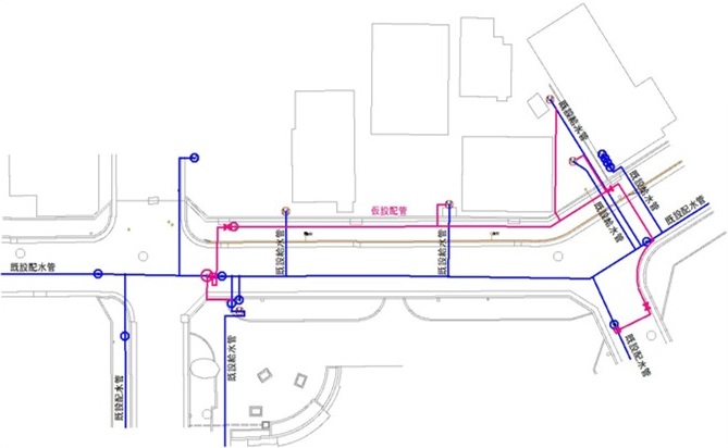 ③水道管交換後に、水流を新しい管に切り替えて、仮設管の撤去を行う。
