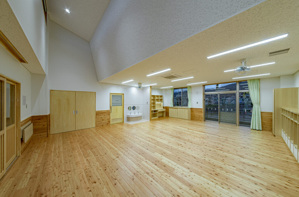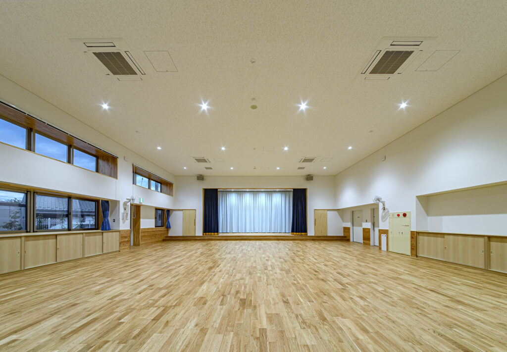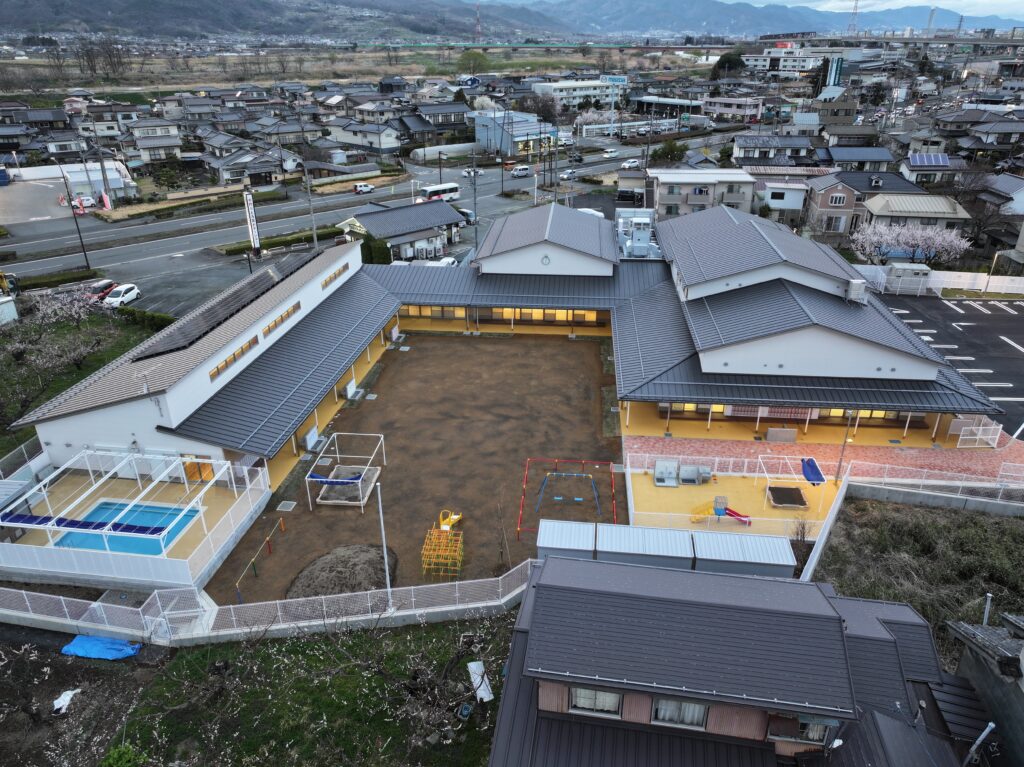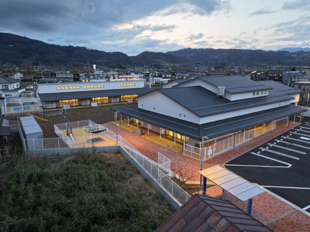 新園舎は、鉄骨造2階建て、延床面積1,475.02㎡の規模で整備しました。園児が安全かつ快適に過ごせる保育環境の確保を目的とし、機能性と利用性に配慮した施設計画としています。地域の子育て環境の充実に寄与する公共施設として、将来にわたり安定した運用が可能な園舎の整備を行いました。