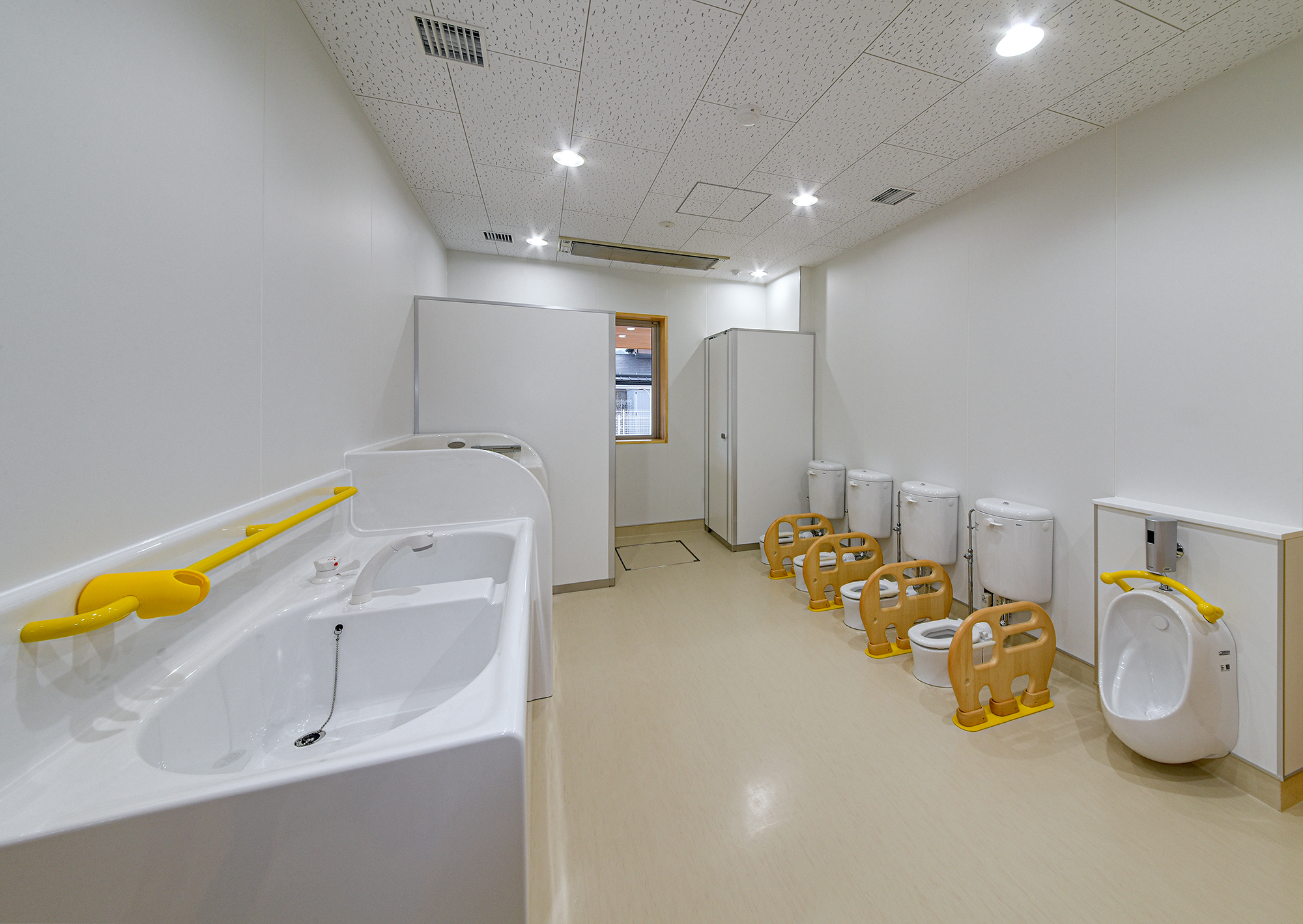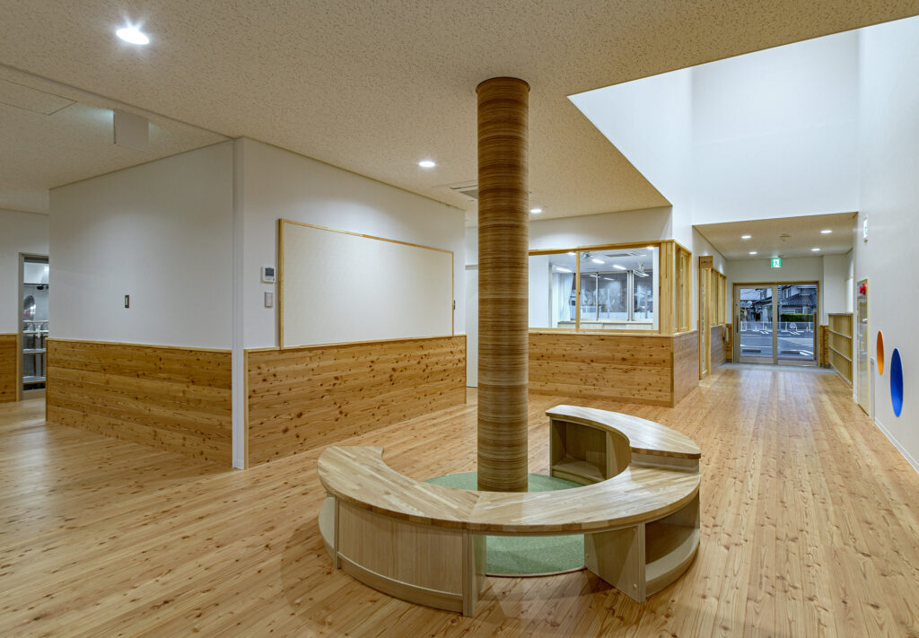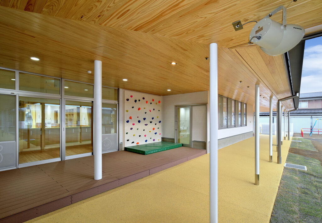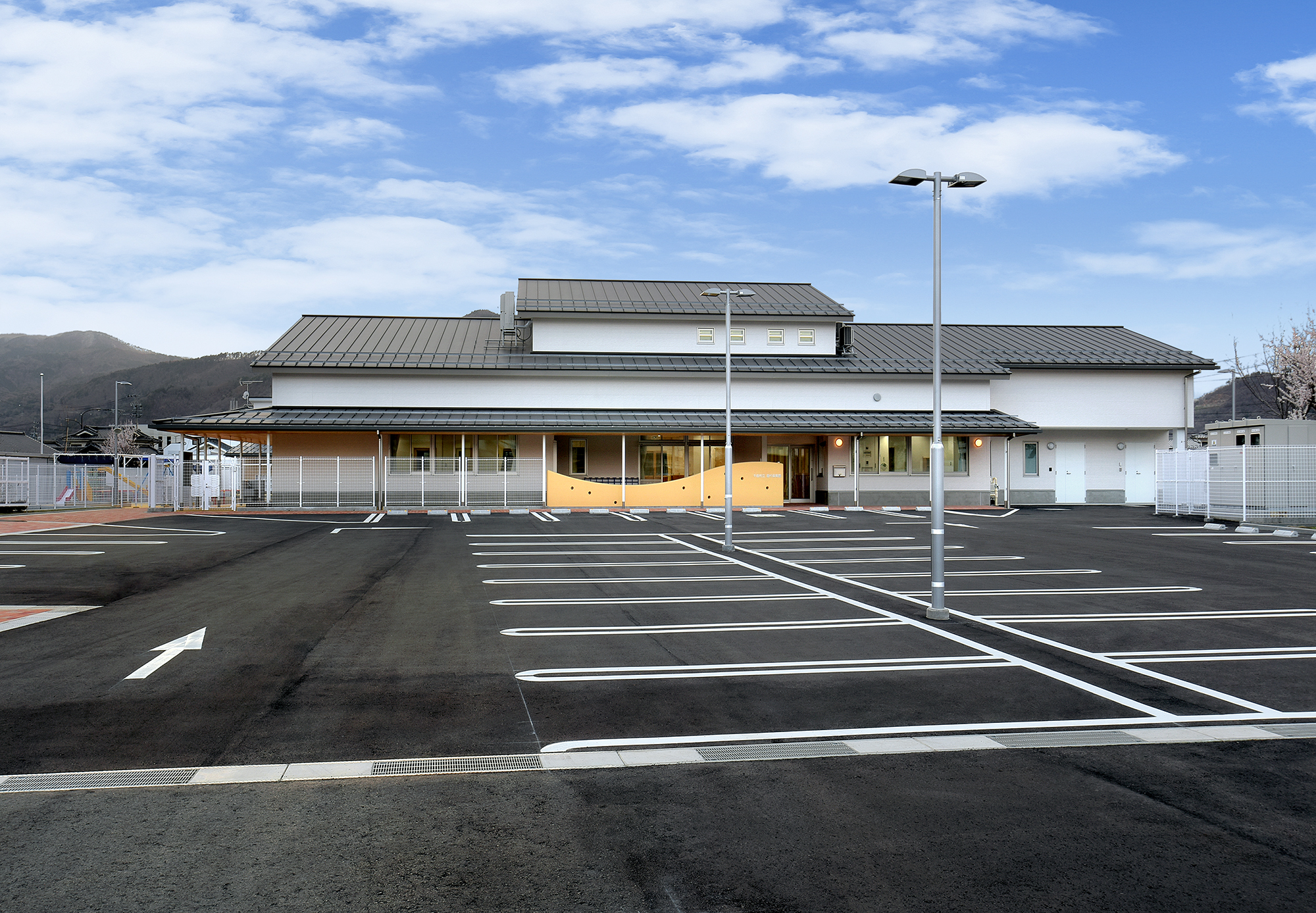 新園舎は、鉄骨造2階建て、延床面積1,475.02㎡の規模で整備しました。園児が安全かつ快適に過ごせる保育環境の確保を目的とし、機能性と利用性に配慮した施設計画としています。地域の子育て環境の充実に寄与する公共施設として、将来にわたり安定した運用が可能な園舎の整備を行いました。