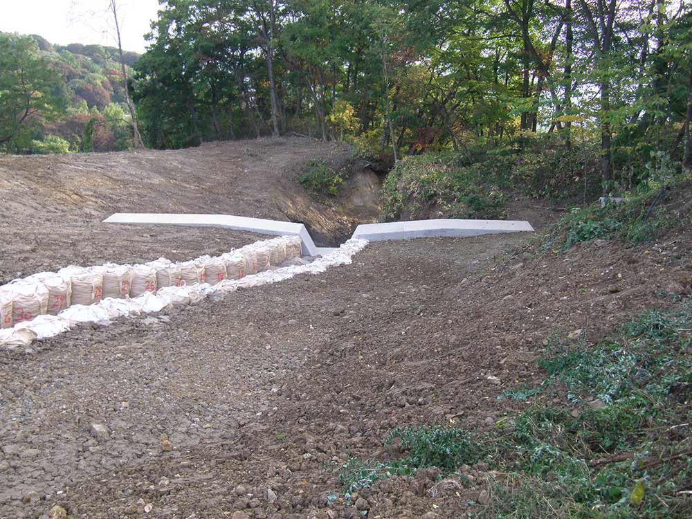 高さ5.0m、延長21.0m、体積226.77㎥の床固工(N=1期)が施工され、土砂の流出抑制と河川の安定化を図りました。