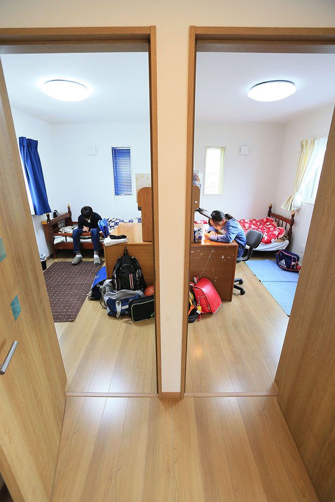 家族それぞれの「ゆとり」を大切にしつつ、共に過ごす時間を豊かにするための工夫が随所に施されています。リビングは広々とした空間で、家族が自然と集まる場所となっています。また、個々のプライバシーを尊重しつつ、自然とコミュニケーションが生まれる空間設計が特徴です。