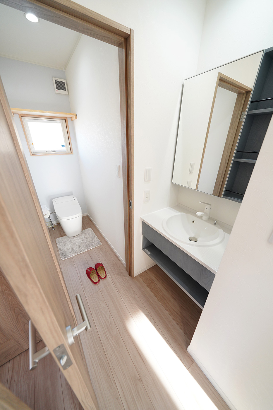 こちらの「等身大の家」は、ライフスタイルに合わせて自由にプランニングした住まいです。無駄を省いたシンプルな設計ながら、必要な機能や快適さをしっかりと備えています。内装や動線は家族の使い勝手を最優先に考え、安心して長く暮らせるよう工夫しました。これからも変化する家族のニーズに対応できる柔軟な間取りで、等身大の暮らしを実現しています。